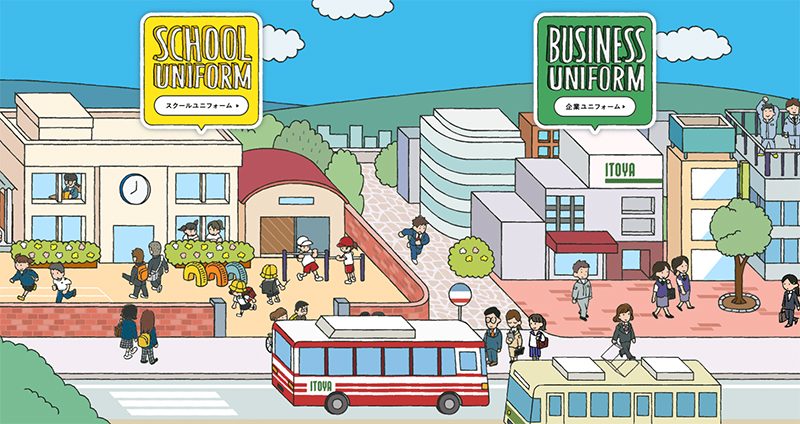 スクールからビジネス、官公庁まで様々なユニフォームを販売しています。「校風(社風)から考えるユニフォームづくり」をコンセプトに、お客様の要望を叶えるユニフォームの提案・販売を進めています。1950年設立の老舗ユニフォーム専門店として、広島市内を中心に県内に5つの店舗を運営し、お客様の暮らしを支えるユニフォームをお届けしています。