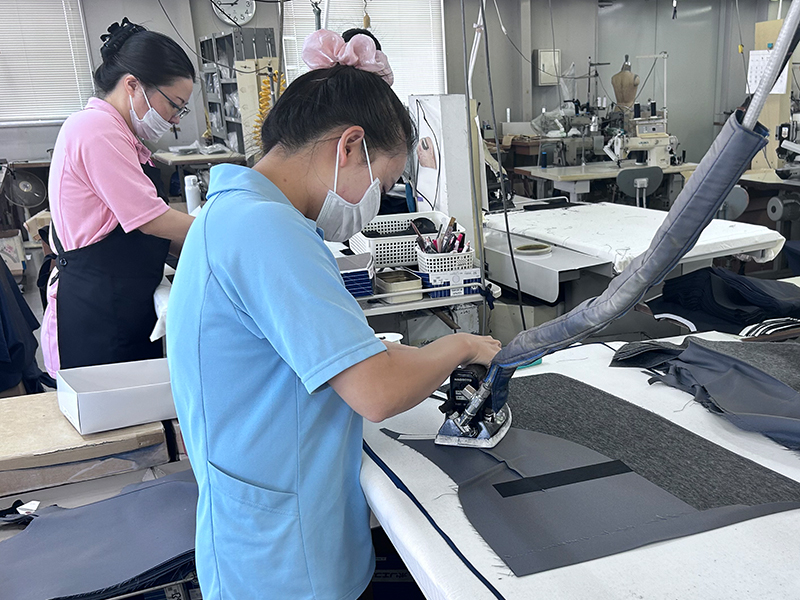 一人が複数個所担当できるように技術を身につけており、シフトによっては担当場所を柔軟に対応しながら縫製ラインを止めないよう進めています。